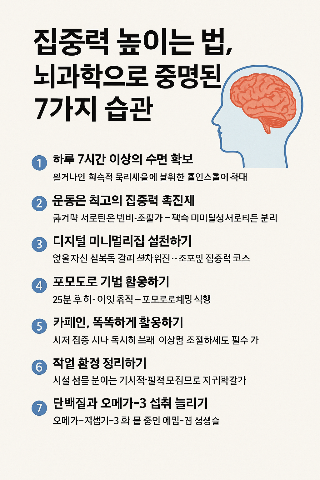 | 하루 5분 뇌 습관으로 집중력 3배 올리는 과학적 방법 (0) | 2025.05.30 |